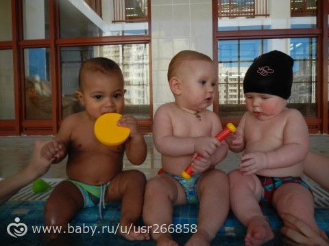 Вот какая компания подобралась у Макса в бассейне)))) Все ровесники (разница в неделю между парнями)