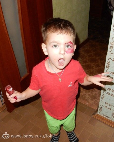 Вот такие мы были красивые вечером в воскресенье — 30 секунд и глаз изрисовал… лаком для ногтей!!! Еле отмыла — в понедельник то в сад! И главное цвет то какой ядреный выбрал)))