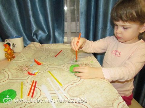 Мы собрали целых три дня, т.к. занимались каждый день не долго, но всё-таки. Времени меньше, т.к. участвую ещё и в кулинарном детском конкурсе). Лошадка у нас из трубочек, мастики и фетра. Маятник в виде обезьянки, качающейся на лиане: распечатали раскраску, вырезали обезьянку, потом дочка раскрашивала, я докрашивала пробелы) и на пластилин сажали нашу воображаемую лиану в виде ниточки с обезьянкой, качается здорово). Ну, и сегодня, наконец, пекли блины (звёздочка из варёной сгущенки, немного кривая к вечеру уже)) и совсем для удачного завершения дня решили сделать звёздочку-сплюшку). Приятных снов, бебирушечки!