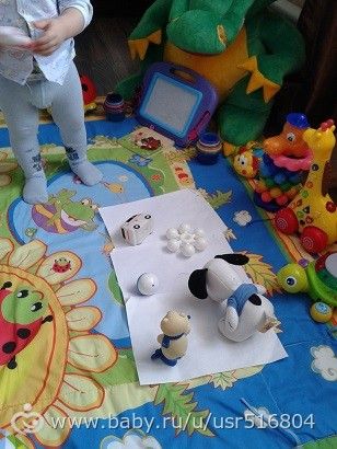 Ну денек у нас получился скудненький… Во-первых у мамы в этот день фантазия что-то плохо работала… Да и белых игрушек практически нет… искали по дому все что можно… больше всего одежды)))ну и время года не подвело)))
