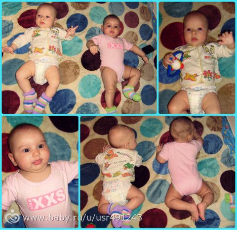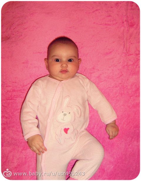 Растем мы не по дням, а по часам. Ну, в принципе, как и все детки маленькие. На взвешивание не ходили в 4 мес. Пойдем во вторник на прививку, там и взвешают. Судя по всему кг 9,5 то у нас есть… Тяжелая, щекастая=)