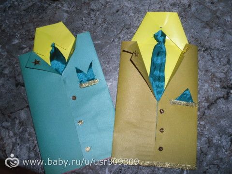 и денежка (мужики решили на баню потратить). А мы в это время мастерили открытки дедушкам, папе и готовили праздничный ужин.