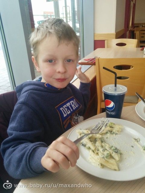 Ну и потом подкрепится в пиццерию. Папка с детьми по буфету взяли. А я худею и пост.