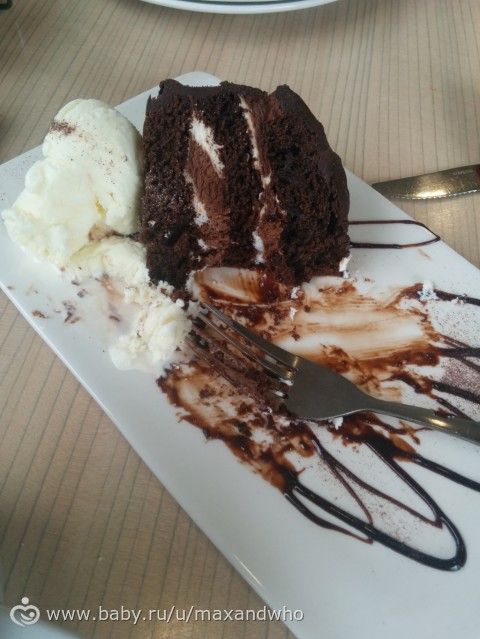 А папка ел жутко вкусную пиццу!!! Смотрел на меня и ушел заказывать мне тортик, не могу, говорит, спокойно есть под голодным взглядом))