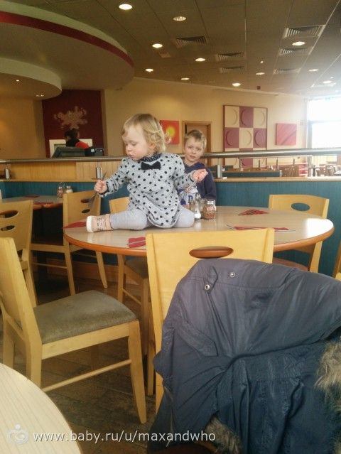 Дети поели и ушли рисовать за соседний столик. официантка (знакомая наша ) подошла поболтать- такие дети у вас замечательные! Поели аккуратненько, и ушли тихонько рисовать! Я-ага, это она тут хорошая, а дома б сидела на столе и в наших тарелках порядки наводила))) Она-как на столе!!!???? Лиза-вот так!