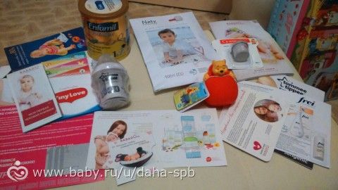 Бутылочка от Томми, которая у нас и так уже есть, но мне не понравилась. Смесь энфамил премиум, игрушка от диснея, судокрем, который нам не подошёл, ну и всякие пробники. Особенно порадовал крем от растяжек для беременных))Самое оно, учитывая, что заказывала я этот подарок ещё до рождения Вани, а ему уже почти 2 месяца.