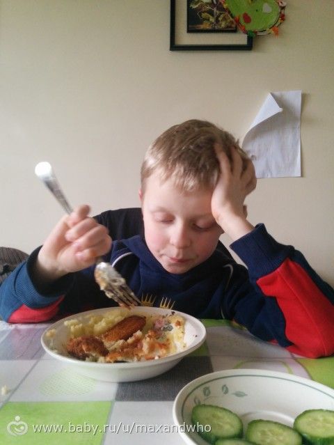 Ну и Макс. Чтоб пост не без него был))) Его трудно впихнуть. Целый день в школе, потом ест и уроки до моей работы делает.