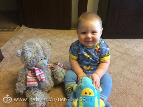Девчули, ну вот и нам уже 7 месяцев.Пишу посты очень редко, сынулька очень много внимания требует))Умеем сидеть, ползает как пуля, встает с опорой и иногда ручки отпускает и несколько секунд стоит.Мы еще на ГВ, прикармливаю кашку, творожок, пюрешки раньше кушали все, а сейчас ничего не хочет, ни мясо, ни овощи, ни фрукты, со стола даем ему попробовать нашу еду, но в меру)))Я не считаю, что это плохо, к году хочу, чтоб все с нашего стола кушал))У нас как вылез зубик 4 февраля, так один и есть, но остальные какие лезут и не дают ему покоя.Научился показывать как злиться, кулаки сжимает, краснеет и говорит уууууу, это так смешно))))Но у нас есть одна проблема, спим и днем и ночью только пеленованным(((Без меня жить не может, только у меня сидит и улыбается мне, может у папки еще, раньше ко всем шел, а сейчас с осторожностью все делает))Вообще не успеваю, как он растет видеть, вроде только беременная ходила))Не представляю как раньше без него жила))Ну вот собственно и мой сыночек))))