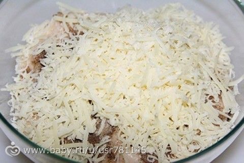 Теперь рыбный фарш перекладываем в миску, добавляем к нему тертый сыр, соль и молотый перец по вкусу, тщательно все перемешиваем.