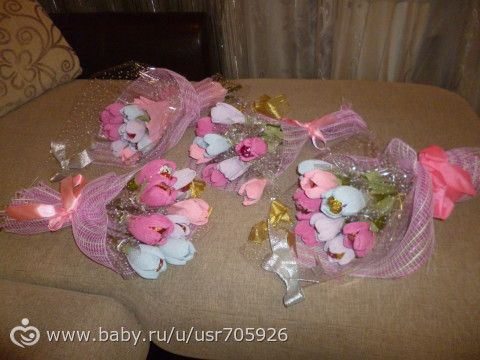 Вот какие букетики с конфетками сделали с сыном бабулькам на 8 марта.