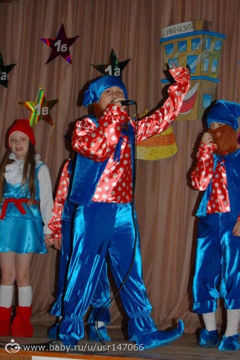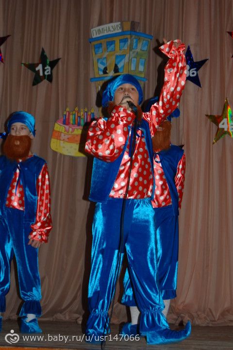 Ходила к сыну на праздник в школу. Был День гимназииоооочень все понравилось, детки молодцы, все подготовились отличноПаша мой отличился тем, что у всех гномов штаны нормально, а у него свисли ниже колен, а подтянуть забыл( и бороду не одел(но все равно было здорово