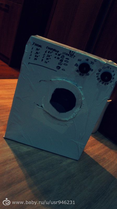 буквально минут 20 и готово))С настоящей и Матвей тоже самое делает, часто любит просто так кнопочки понажимать, вот и сделала ему там крутятся 'кнопочки') он даже звук имитирует типа стирает машинка))