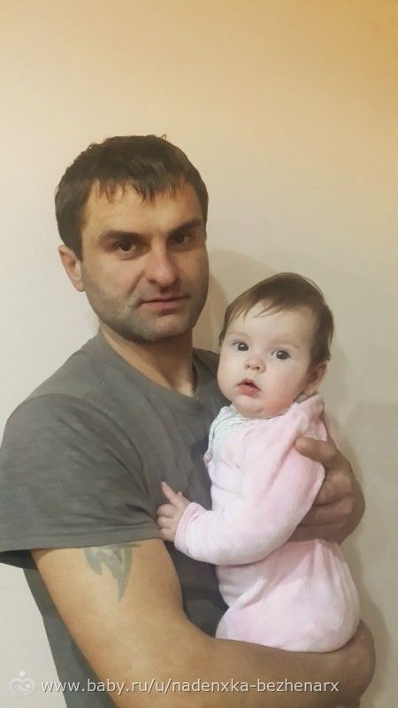 А еще в последнее время наш папочка стал больше времени проводить с доченькой.(тьфу тьфу тьфу на него) Ритуля тоже стала больше чем раньше тянуться к папе и с удовольствием изучает ручками папино лицо и трогает колючую щетину))))