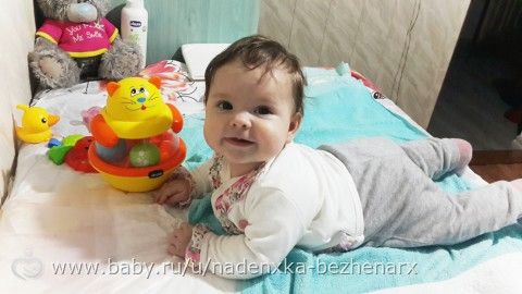 Зато мы научились лежа на пузе потихонечку прокручиваться вокруг своей оси ))) И уже во всю пытается ползти .