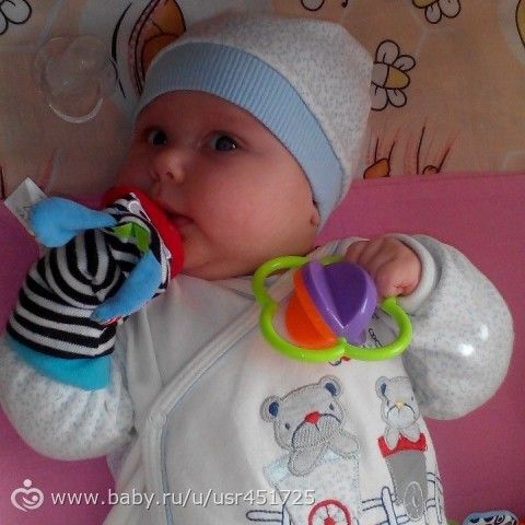 был период острого жевания своего кулака, потом перешедшее на пальцы (отвлекала на пустышку, т.к. считаю, что от сосания пустышки проще отучить, чем от сосания пальца). тянет в рот все включая мои пальцы, есть игрушки из мягкого пластика (как толстый полиэтилен), таскает в рот, но больше нравится обычная погремушка (видимо удобнее лежит в руке). все симптомы уже давно, зубиков пока нет