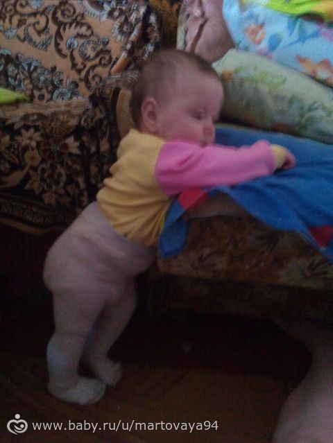 Я встаю с кровати и вижу такую картину: Кристина ползает по полу и играется моим телефоном. Господи, у меня чуть инфаркт не случился. Она сползла с дивана, так как у нас нет второй кроватки, она спит там, и там есть разъем между кроваткой и диваном. Вопрос в том, как она достала телефон, который был на столе, да и вообще как она не ударилась головой при падении, был бы истошный плач, если бы ударилась, а она по любому бы головой бахнулась об пол(я проверяла, ложила ее на край и наблюдала как она сползает, конечно же я ее ловила при этом, но сам факт того, что она могла приземлится на спину, говорит сам о себе, потому что сползая, ее ноги заносит под диван и она никак не могла приземлиться на ноги и сесть на попу), она лежала на животе на полу, играясь телефоном и не плакала=) вот фото того, примерно в каком положении она сползала