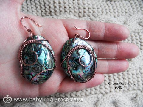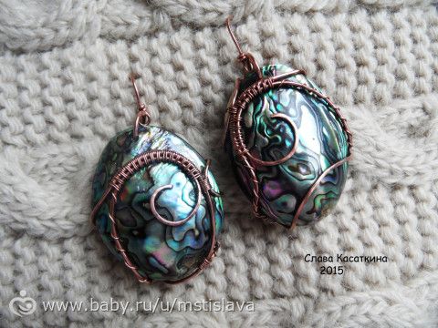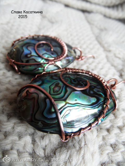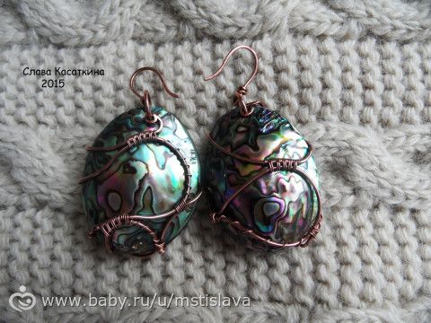 асимметричные серьги «Бездна»))) перламутр, медь, патина аммиак.