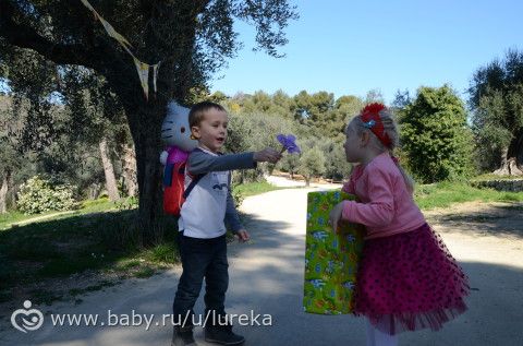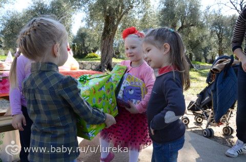 Полина подарила интеллектуальную игру-складывать карточки.Маргарита подарила Монстра и даже произнесла речь.Такая забавная))
