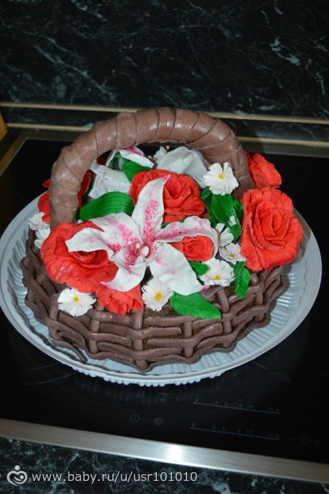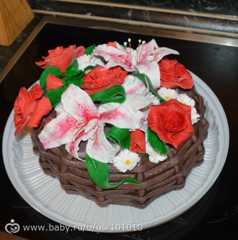 без ручки красивее намного! тортик, как живой букет