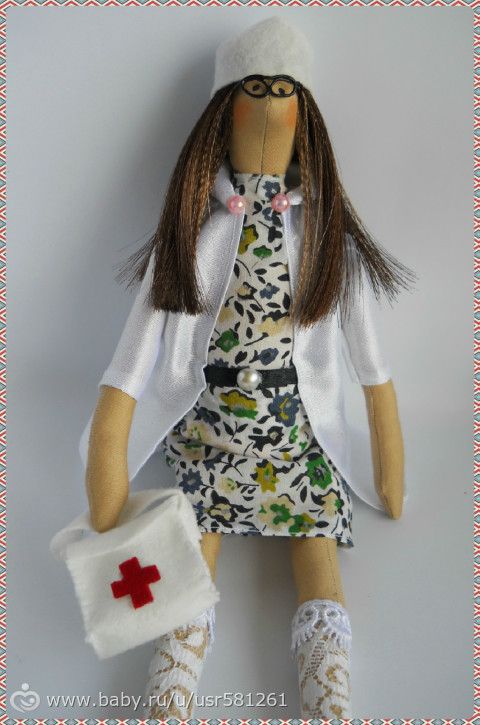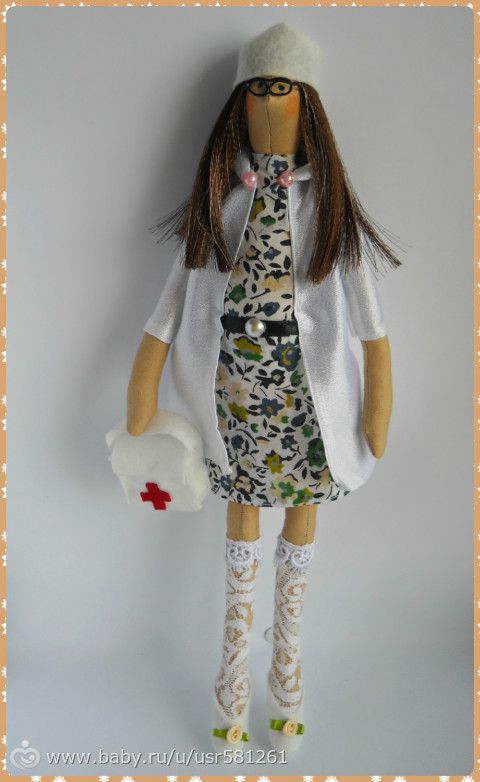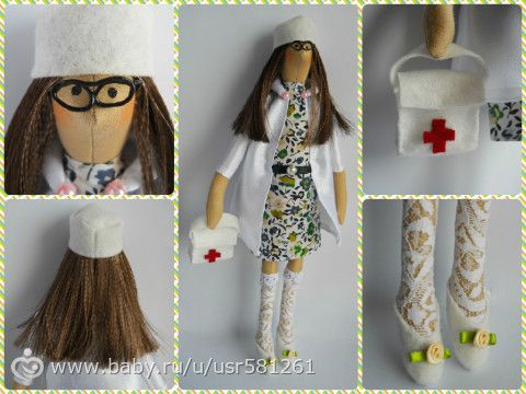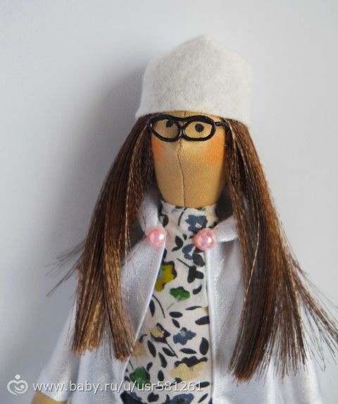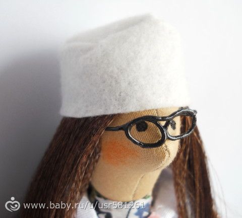 Платье как у девочки в цветочек и с черным ремешком, в комплекте шапочка, халат, белые туфельки врача, ну и какой же врач без аптечки) Волосы постаралась сделать похожие на натуральные и по цвету. По желанию очки как у именинницы) Под платьем есть трусики. Может сидеть и стоять у опоры. Рост 32 см. Надеюсь имениннице понравится необычный подарок))