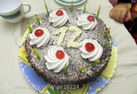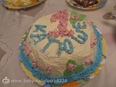торт я готовила сама только на девчачьи дни рождения, на Венин купила магазинный, но сама циферку нарисовала — значит уже мой)