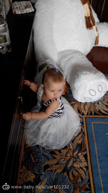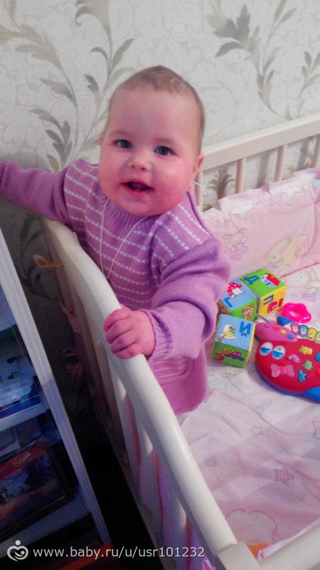 Этот месяц Белка усовершенствовала все свои навыки, особенно ползание)Стала убегать, когда говоришь Белла ты куда поползла? Специально подождет пока за ней погонятся и давай разгонятся))Так смешно.Стала отвечать на вопросы))Спрашиваешь ее Белла пойдем гулять или хочешь ням: она да)))Стала попугаем: повторяет все простые слова)Папа, мама, баба, деда, ням, купи-купи, мяу, дай.Любит смотреть на котов на улице и восторженно радоваться, мяукать)Стоит самостоятельно достаточно долго, но идти еще не решается(уже и сон снился, что пошла на праздник какой-то, думала сегодня, но видимо нет).Все также ходит за ручки, встает и ходит у любой опоры.Взгляд у нее стал более осмысленным что-ли, как-то поменялась.