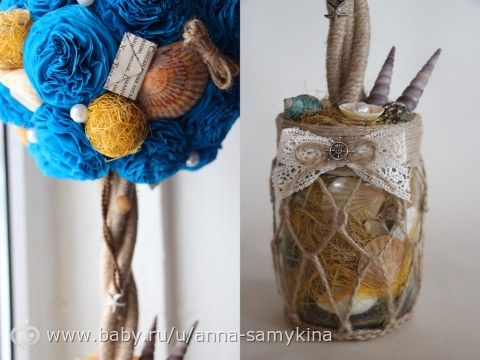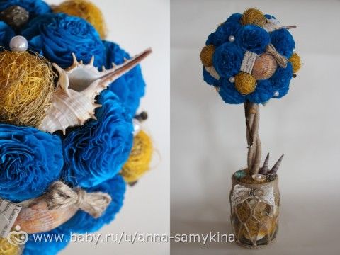 К сожалению, сколько бы я не пыталась фотографировать этот топиарий, фотоаппарат совершенно неправильно передает его изумрудный цвет ((( Да и само изготовление этого топа далось мне нелегко, начиная с дюжины морских узелков на кашпо, заканчивая недельным отпуском моей музы ))) Но все же вымучила!!!!