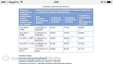Привет всем! Я тут преследую меркантильный интерес, в связи с чем хочу посоветоваться, как бы лучше поступить: нам, как семье до 30 лет полагаются лужковские выплаты. Это пять прожиточных минимумов. На данный момент ПМ по Москве составляет 13 919 руб., но в интернете есть инфа, что ПМ в связи с кризисом ВЕРОЯТНО будут увеличивать и делать это собираются вроде как в марте. Вот я и думаю: может, не спешить и дождаться изменений? Ведь 13919 руб. — это минимум, установленный еще в 3-ем квартале 14-го года. Может быть такое, что сумма значительно увеличится? Нам бы не помешало, обстановка сейчас и впрямь тяжелая, у мужа зп упала из-за кризиса этого долбаного((( а еще на его чудесной работе (полностью белой и легальной, ага) почему-то наотрез отказываются выплачивать декретные или как их там ( я-то работаю неофициально) так что по закону ему обязаны платить, а ему отказывают, я уже на эту тему с ним 10 раз ругалась, он боится видите ли, наглым слишком на работе показаться