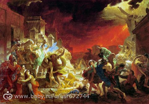 У моего деда висела вот такая. «Последний день Помпеи» Карла Блюллова. На нее тоже могла долго смотреть ))хихи)) и у нас над кроватью висела. мне она напоминает жену моего крестного.