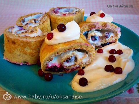 Рецепт: 2 яйца взбить блендером, добавить 2 ст.л овсянки,1 ч.л арахисовой пасты и пожарить как единый блин на сковороде, на медленном огне, мне масло не понадобилось у меня тефлоновая сковородка. Мягкий творог смешать с любым вареньем 1 ч.л или медом, намазать овсяноблин и посыпать ягодами. Свернуть в рулон и порезать как роллы. Чуть подождать когда он пропитается и ммммм наслаждение!