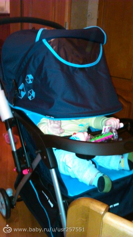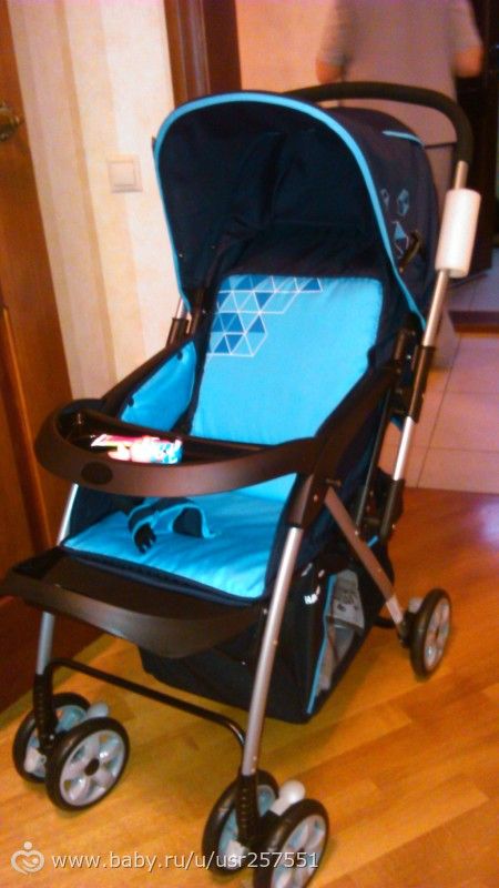 Честно сказать, взяла её скорее от безысходности, чем по большой любви. Просто наткнулась на неё на сайте ростовском, они были в наличии, и за три дня у поставщика осталась одна, и ту уже чуть не забрали. И немудрено. Судите сами: прогулка весом 8кг, склад-расклад одной рукой, перекидная ручка!!!, столик с подстаканником, поворотные колеса с фиксацией, капор с окошком до самого столика, лежачее положение спинки, регулируемая подножка, широкое спальное место, в комплекте полог на ножки, москитка, дождевик, огромная корзина для вещей… и цена 5500р! Это притом, что сейчас самая простая прогулка хорошей фирмы не стоит меньше 8-10 т.р. А с такими наворотами и того не меньше 20. Самок интересное, что на нее в сети нет НИ ОДНОГО отзыва! Это потому, что в Россию ее долго не привозили, как сказала продавец. Так что заказывала вслепую, благо можно было отказаться. Кода ее привезли, я была если честно растеряна: ну вроде катается неплохо, но сравнить-то по сути мне не с чем! Только с огромным трансформером нашим, кстати тоже фирмы Geoby, (который достался нам после троих детей и в отличном состоянии). Посадили в коляску сынишку, и ему понравилось! Залепетал, заулыбался и с удовольствием катался. Сомневались долго, главное сомнение в ее комфортности на плохой дороге, так как по сути амортизации на ней нет, хотя колесики довольно мягкие, как будто резиновые (но папа сказал пластик). Но я плюнула и решила взять: а что, за такую цену не грех и бабушке отвезти если что, да и в деревню брать с собой и убивать спокойно можно. Катались полвечера с сыном по квартире, и сидя, и лежа, он в восторге, не капризничал, такой король в ней)) Это на мой взгляд главное) А я уже приноровилась ее катать, блокировать, поднимать, регулировать, собирать, разбирать — все очень просто! В общем, я в восторге неописуемом, теперь ждем завтра, чтобы выкатить на прогулочку)) Единственное, основной цвет возможно мрачноват — тёмно-синий. Но голубые вставки освежают, так что сильно не переживаю. В магазинах вообще всё красное и серое стоит. В общем, цените. После обкатки напишу полноценный отзыв, и буду первопроходцем!)) Аж приятно прям)