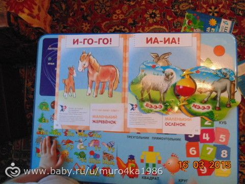 1Во общем как всегда вначале посмотрели мультик развивающий про всех домашних животных.посмеялись, по повторяли как кто говорит(не все, но и так хорошо, уж очень понравилось как лошадка разговаривает))