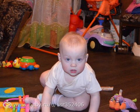 Едим 4-е раза в день, в основном общий стол (мну вилкой), смесь не едят, пьем из трубочки, сейчас учимся пить из кружки. Пытаемся есть сами, берем ложку, опускаем в тарелку, пытаемся зачерпнуть… а дальше мама моет всех и всё кругом.
