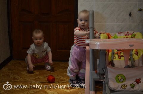 Много чего умеем, но нам еще учится и учится. В сад скорее всего не попадем, т.к. наша очередь двигается быстро, но в обратном направлении. Через месяц выхожу на работу, с девчонками будет сидеть моя мама.