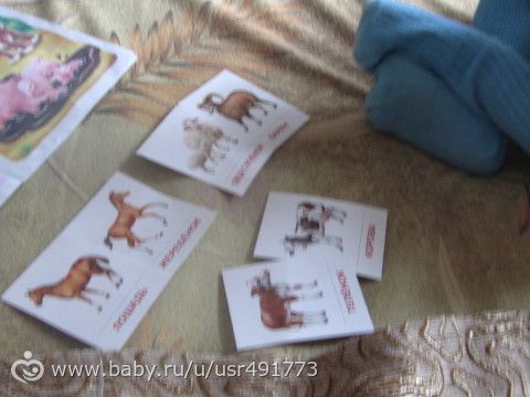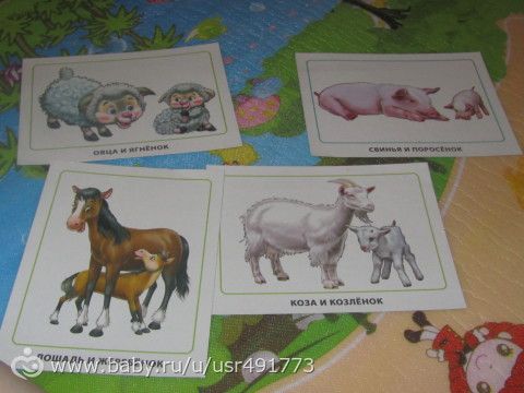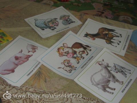 Кроме того, у меня много разных карточек с животными, в том числе Мамы и малыши, рассматривали все карточки