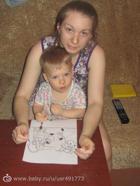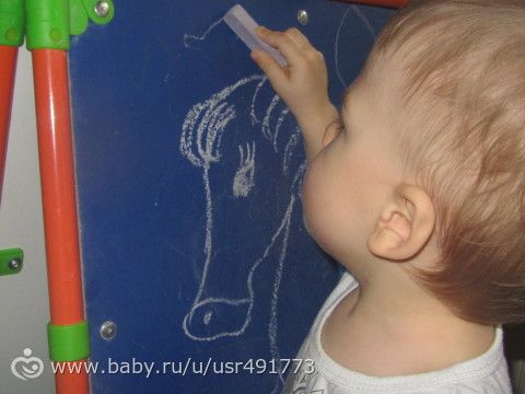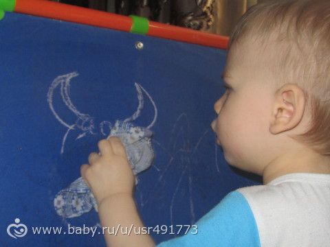 Я рисовала на мольберте животных мелом, сын стирал, последнее время ему очень нравится стирать