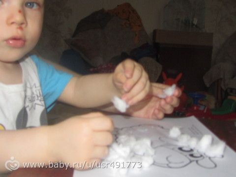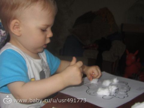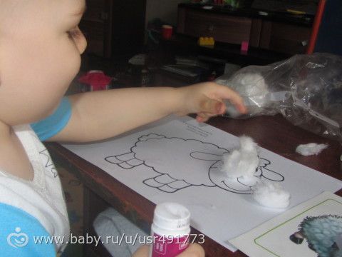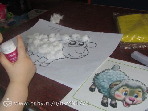 Потом клеили овечке шерсть из ваты. Ване очень нравилось клеить, потом отдирать))