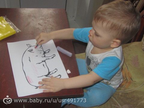 Еще в этот день раскрашивали восковыми мелками свинью. мелками нравится раскрашивать, они