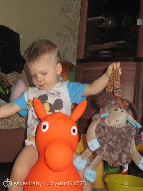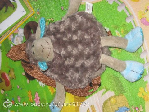 Нашли овечку-рюкзачок, которая осталась от новогодних подарков сладких, надевали, снимали его, трогали шерстку, восхищались ее мягкости)) Катали ее на лошадке)