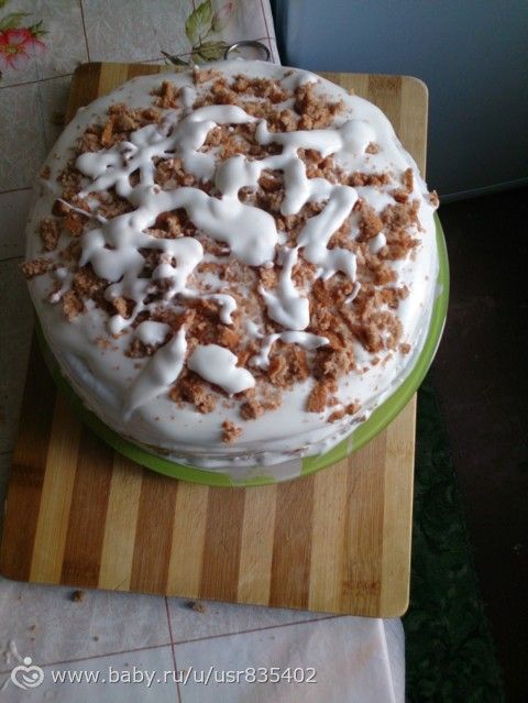 Сметана и сахар не взбиваю так как получается вода а не крем, Даю постоят, размешиваю ложкой