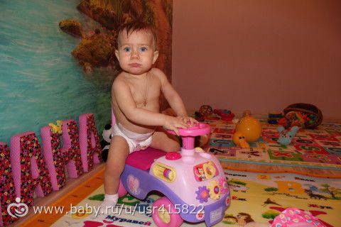 Милашке она пришлась по душе, больше любит за неё ходить, чем на ней сидеть, но сидеть тоже любит, а вот всякие крутящиеся, музыкальные инструменты нам не интересны, почему то… В общем я очень довольна, что купила её по акции, и теперь думаю зачем раньше смотрела на такие машинки по 4 т.р, такие дорогие они не нужны(по крайней мере нашему дому