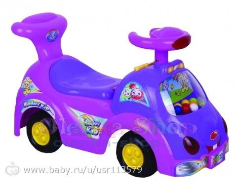 Милашке она пришлась по душе, больше любит за неё ходить, чем на ней сидеть, но сидеть тоже любит, а вот всякие крутящиеся, музыкальные инструменты нам не интересны, почему то… В общем я очень довольна, что купила её по акции, и теперь думаю зачем раньше смотрела на такие машинки по 4 т.р, такие дорогие они не нужны(по крайней мере нашему дому