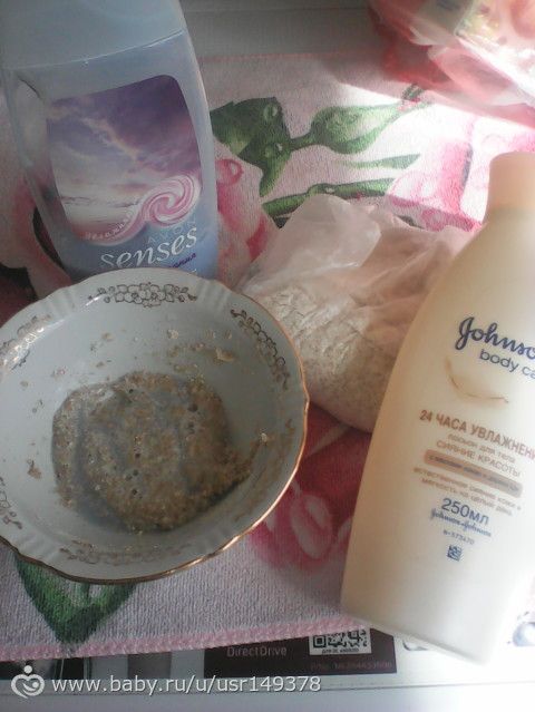 3) 1.На этой неделе побаловала себя домашним скрабом из овсянки и обычного геля для душа, эффект потрясающий, наверное многие знают как хорошо овсянка влияет на кожу и очищает её + мягкий лосьон для тела