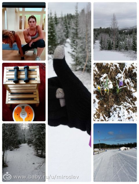 Спорт. С ним у меня были некоторые трудности, никак не могла найти на него время, но часто гуляла с коляской, у нас опять навалило снега и коляску приходилось таскать чуть ли не на себе, да еще и в горку, вечером перед сном качала прес и приседала.