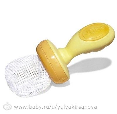 у нас так с яблоком было, поэтому ничего не давала, кроме как с ложки. купи ниблер и будь спокойна!