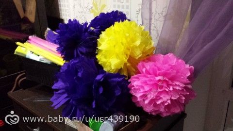 Просто креп помягче, мне из него было удобнее. А помпоны вы тоже с гофры делали?
