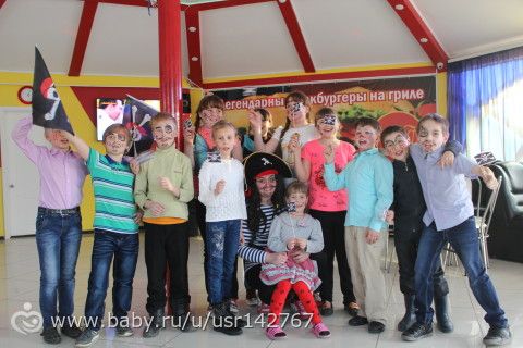 в пятницу ходиди ка ДР к брату 11 лет в кафе. Весело погуляли, Др было детское, из взрослых только мама именинника и я. ( я снимала детей) Была пиратская вечеринка, дочка моя немного испугаласть пирата.