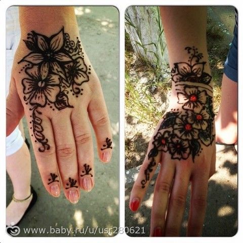 Тату хной, в зависимости от сложности и размера, выполняется всего за 1 — 2 часа, а держится на теле примерно 10 — 20 дней. Магазины готовы предложить разные оттенки порошка и пасты – от натурального рыжего до красного, розового, зеленого, добавляя различные красители. Иногда рисунки мехенди украшаются стразами, кристаллами Swarovski и блестками. До и после нанесения хны, кожа смазывается тонким слоем специального масла, в состав которого входят: терпентинное масло, масло лимона, глицерин.Процедура нанесения хны, разумеется, безболезненна, гипоаллергенна и абсолютно гигиенична, она исключает возможность занесения микробов и инфекций. Более того, хна благотворно воздействует на кожу, является лекарственным средством и предотвращает появление кожных заболеваний.