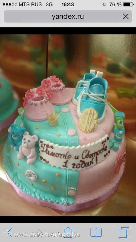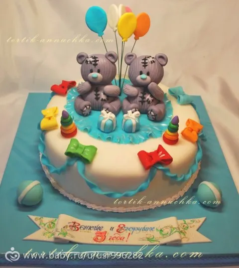 Девочки, начала задумываться о празднике для моих лапусичек… Покидайте фотки, какие тортики вы заказывали на годик? особенно этот вопрос актуален мамам двойняшек М+Ж :)))