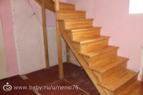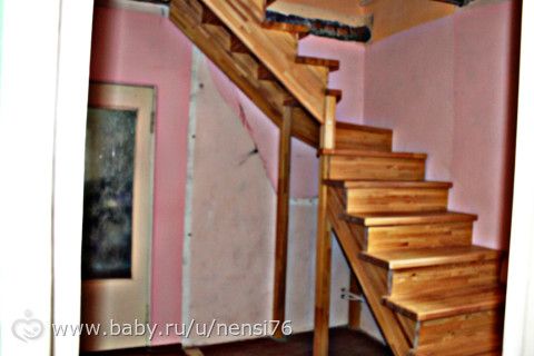 Такая лестница у нас была изначально, как только купили дом. По ней было очень тяжко подниматься, а спускаться так вообще жуть